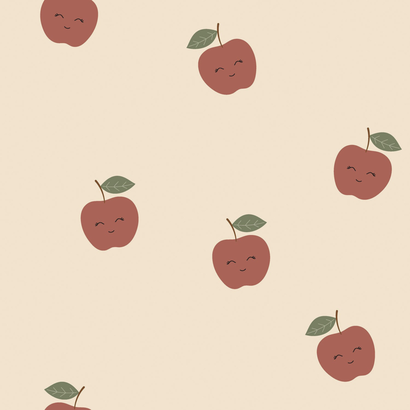 French Terry - Appels BeigeFrench Terry stof BeigeFrench terry stof bedrukt met appels in de kleur beige . Deze stof heeft een breedte van 150 cm en een gewicht van 250 g/m2.