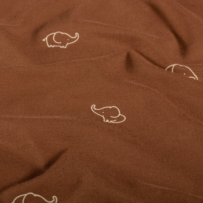 Katoen Jersey Olifanten RoestKatoen Jersey stof Gebroken witDeze stof heeft een breedte van 150 cm en een gewicht van 200 g/m2.