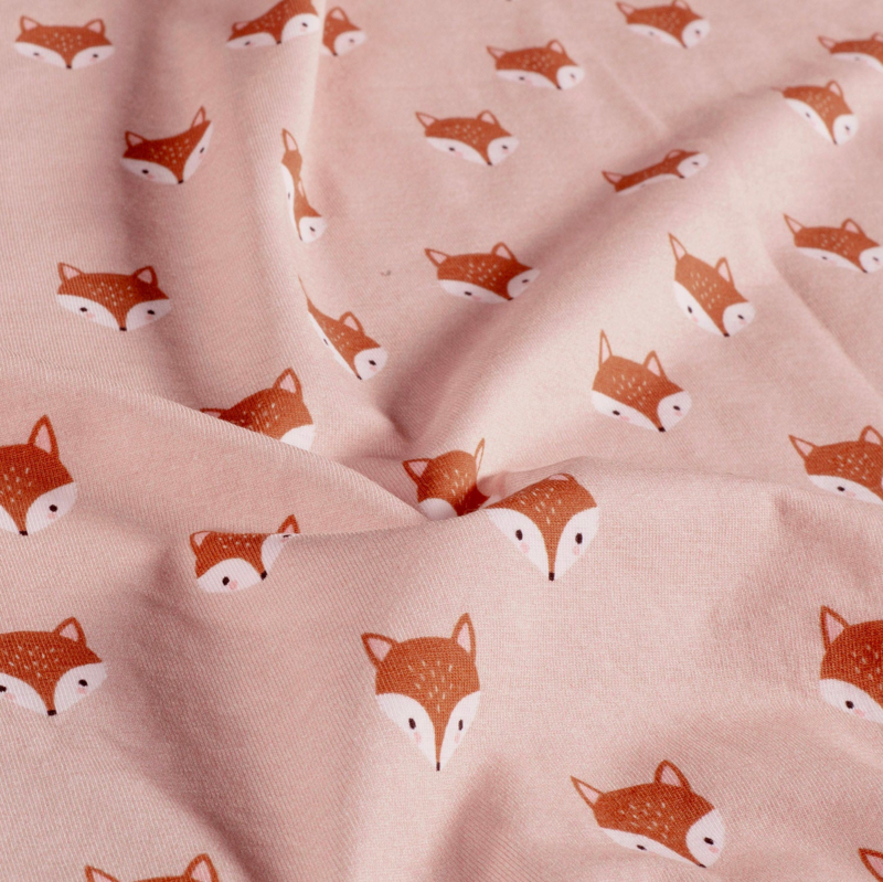 Katoen Jersey - Vossen RozeDeze stof heeft een breedte van 150 cm en een gewicht van 200 g/m2.
